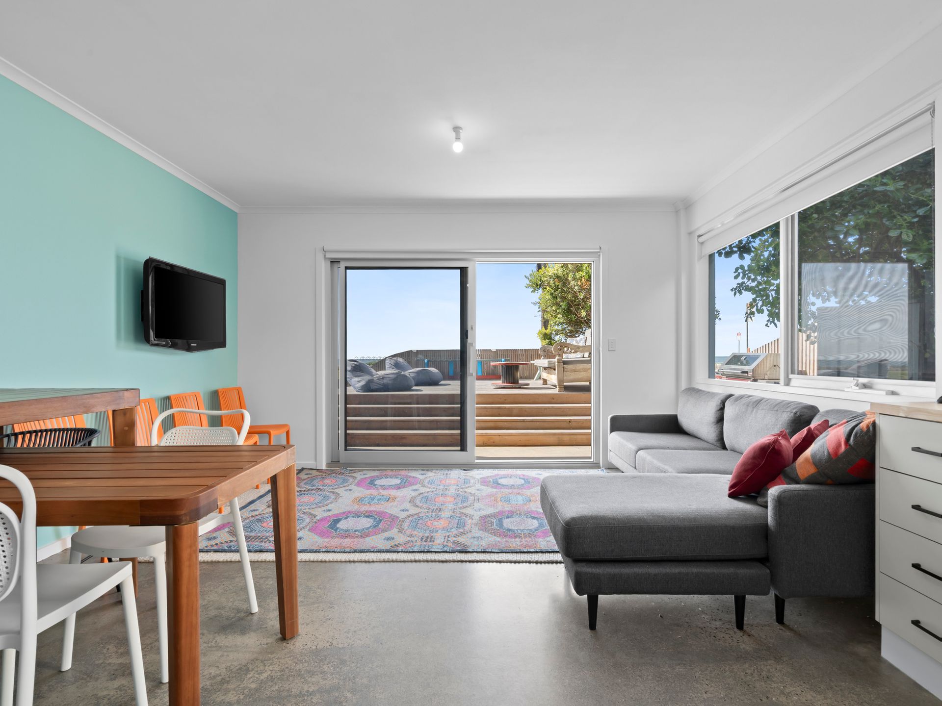 Designed for comfort and ease, the apartment features light-filled living spaces and a practical layout ideal for families, couples or small groups. The inviting front deck is a standout feature—perfect for enjoying your morning coffee, an afternoon drink, or simply unwinding while soaking up the fresh coastal air.