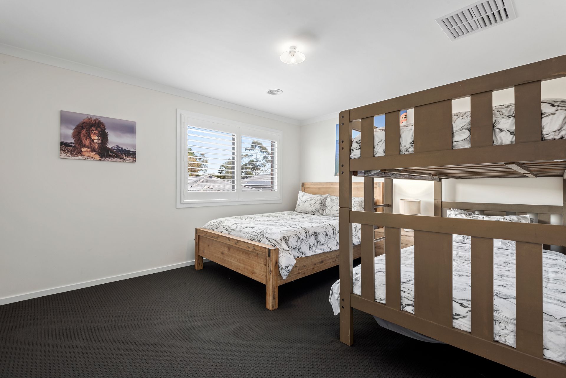 This well designed home boasts a generously proportioned master bedroom featuring an ensuite equipped with a claw bath and shower. Accommodating various preferences, the home includes two bedrooms furnished with queen beds and further bedroom with king single bunks and an additional queen bed.