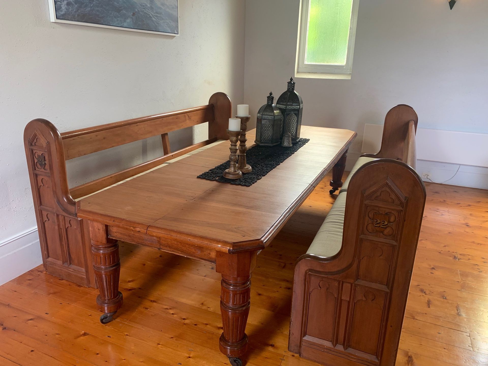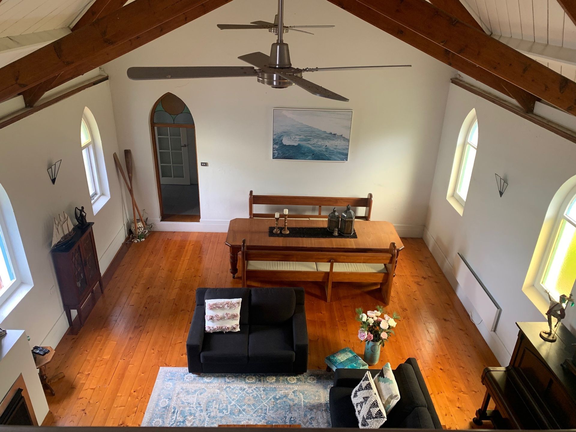 Consisting of 3 large bedrooms, 3 bathrooms, 2 living areas, a spacious open-plan kitchen, living, dining area with access to the rear deck, terrace area and mezzanine. The study/library overlooks the original open space of the interior of the stunning church.