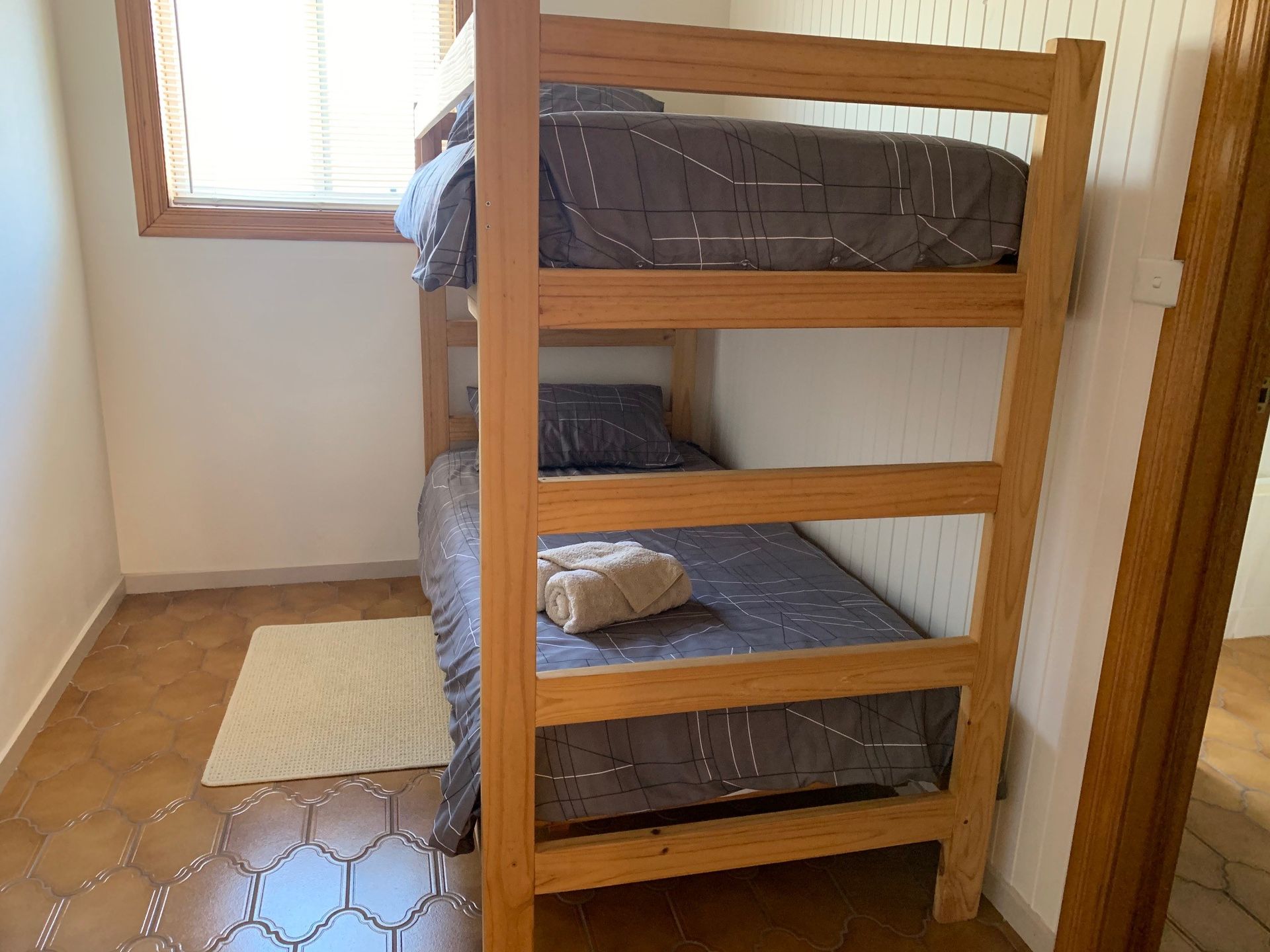 Featuring two bedrooms and a spacious yard with BBQ area, this property is perfect for enjoying a sunny afternoon. The bedroom configuration includes a comfortable queen bed in the main bedroom and a bunk bed in the second bedroom, accommodating up to four guests.